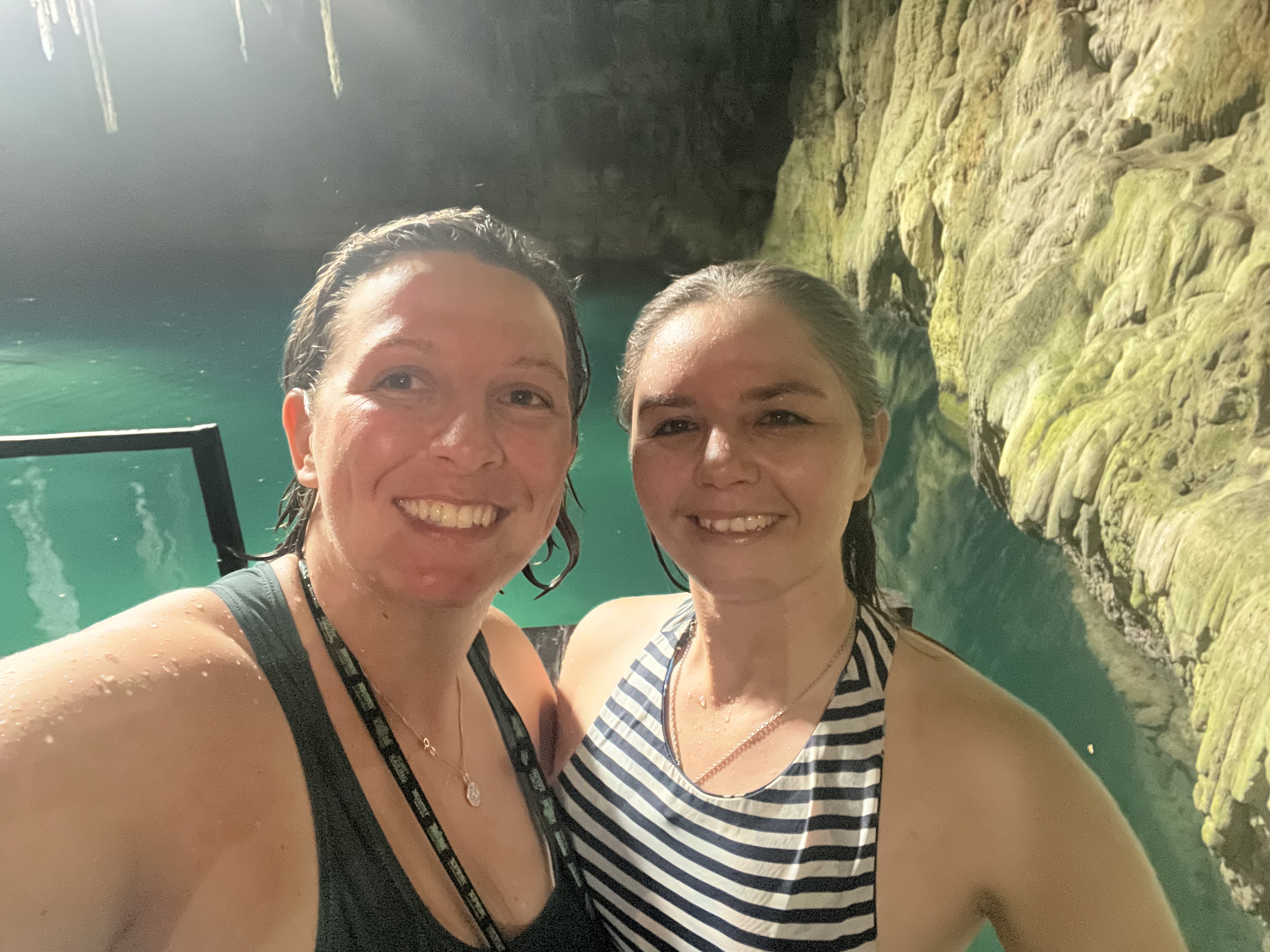 As we were both strong swimmers we decided not to use the life jackets. There is a safety line that runs across the cenote that you can grab hold of. In the middle is an area that is a little higher, so you can safely sit and get your feet nibbled by the many fish and watch the many birds flying in and out that live in the cenote. Some of the fish were pretty big too!