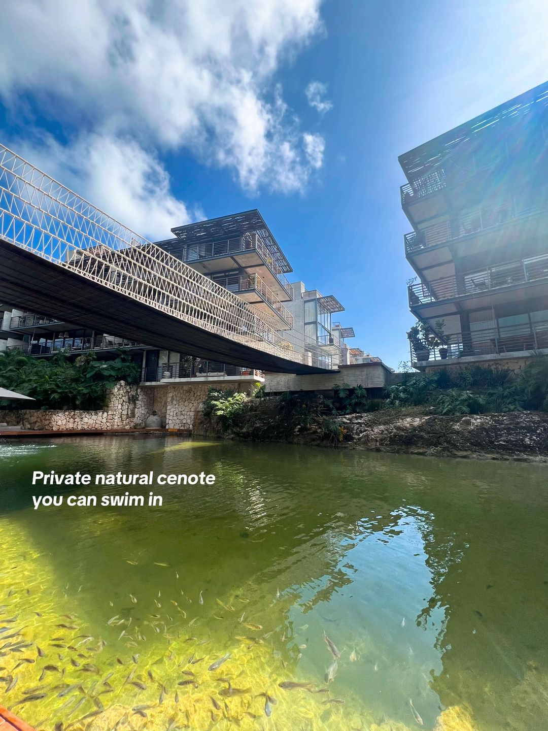 The next morning I had a wander around the premises, where all of the apartment blocks connect into one main area at the front. There are plenty of sun loungers and spaces to chill in the water. There is a gym and lots of spaces to sit and relax. You can also climb to the top of the apartment blocks for stunning jungle views. The highlight of Xalet is the private open cenote. I spent some time sunning here where the natural cenote has fish swimming around – they even nibbled on my feet. A personal pedicure.