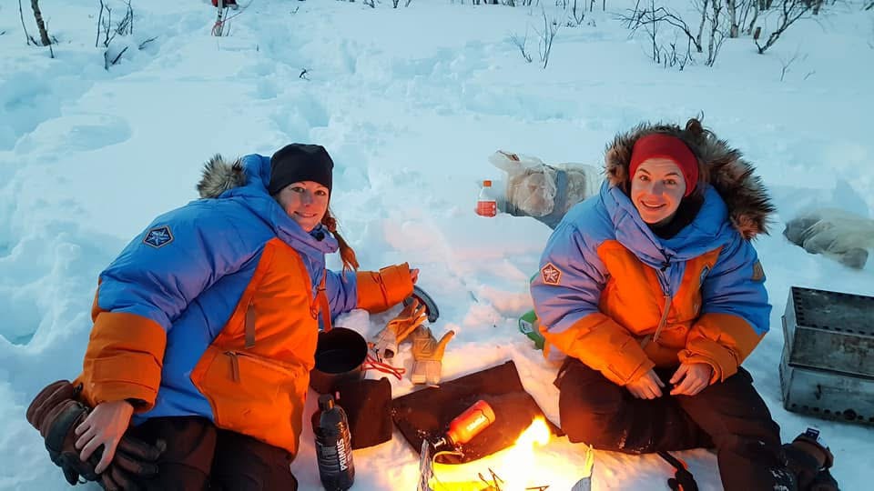 After some breakfast and a briefing, I make my way back to my room and get ready into my new outdoor gear. Today is learning day. How to put up a tent effectively, how to make a fire, how to boil water from snow and most importantly how to use a sled. None of us had done this before and learning something new is always a plus. We were put into teams of 4: 2 countries per team. I was paired with the bodybuilder, a guy called Frank from Hungary who lives in London, who is a big softie. On the other team were the our friends from Germany – Carola and Lena. This would be our team. We were there to support each other through the good and bad and the freezing cold.