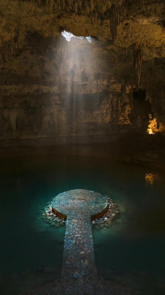 If you’ve seen that photo of someone standing on a stone platform with a beam of sunlight pouring down-it’s from Cenote Suytun. This cavern cenote is enclosed, giving it an otherworldly, cinematic vibe. It’s shallow, so not ideal for diving, but visually unforgettable.