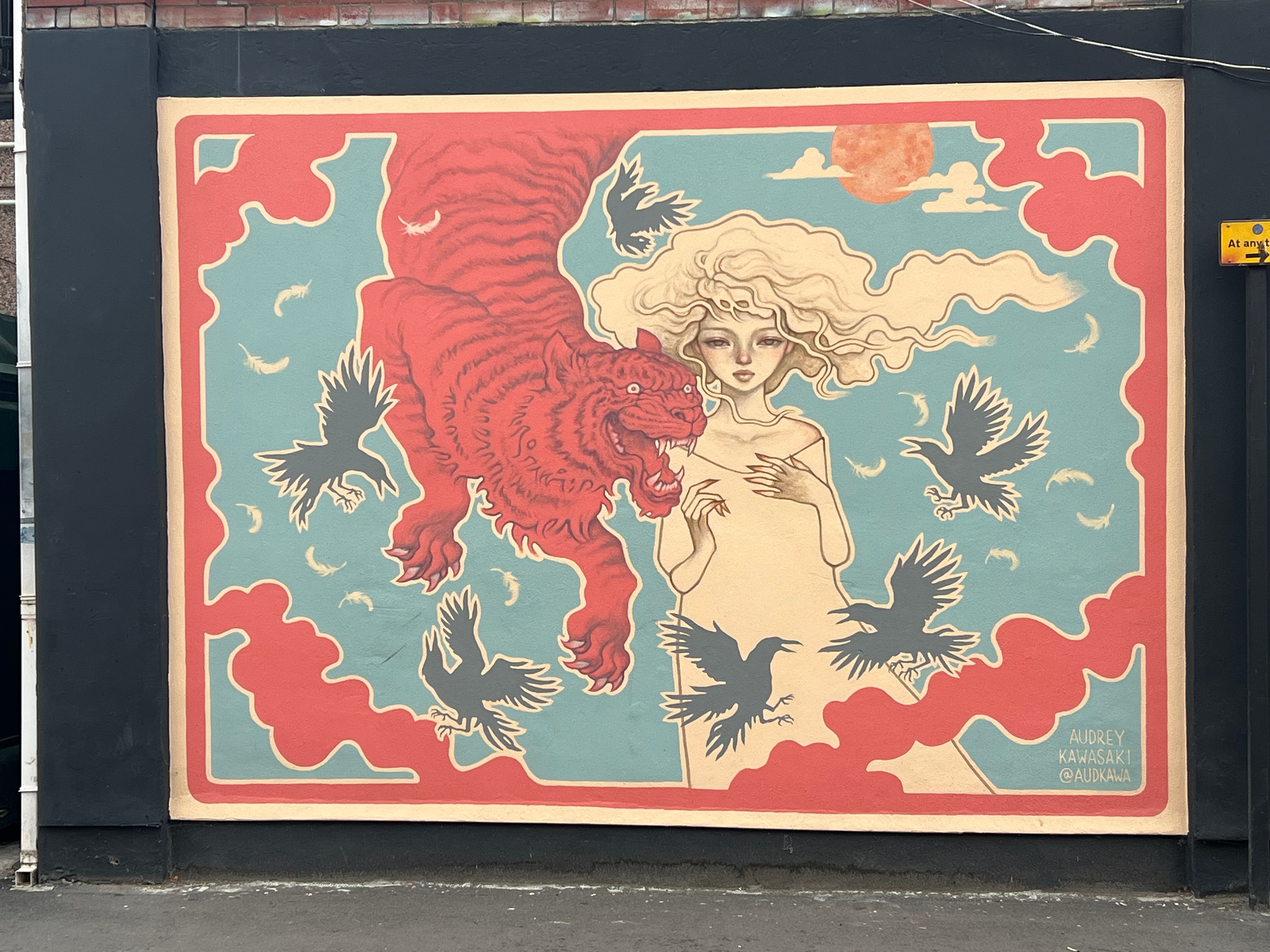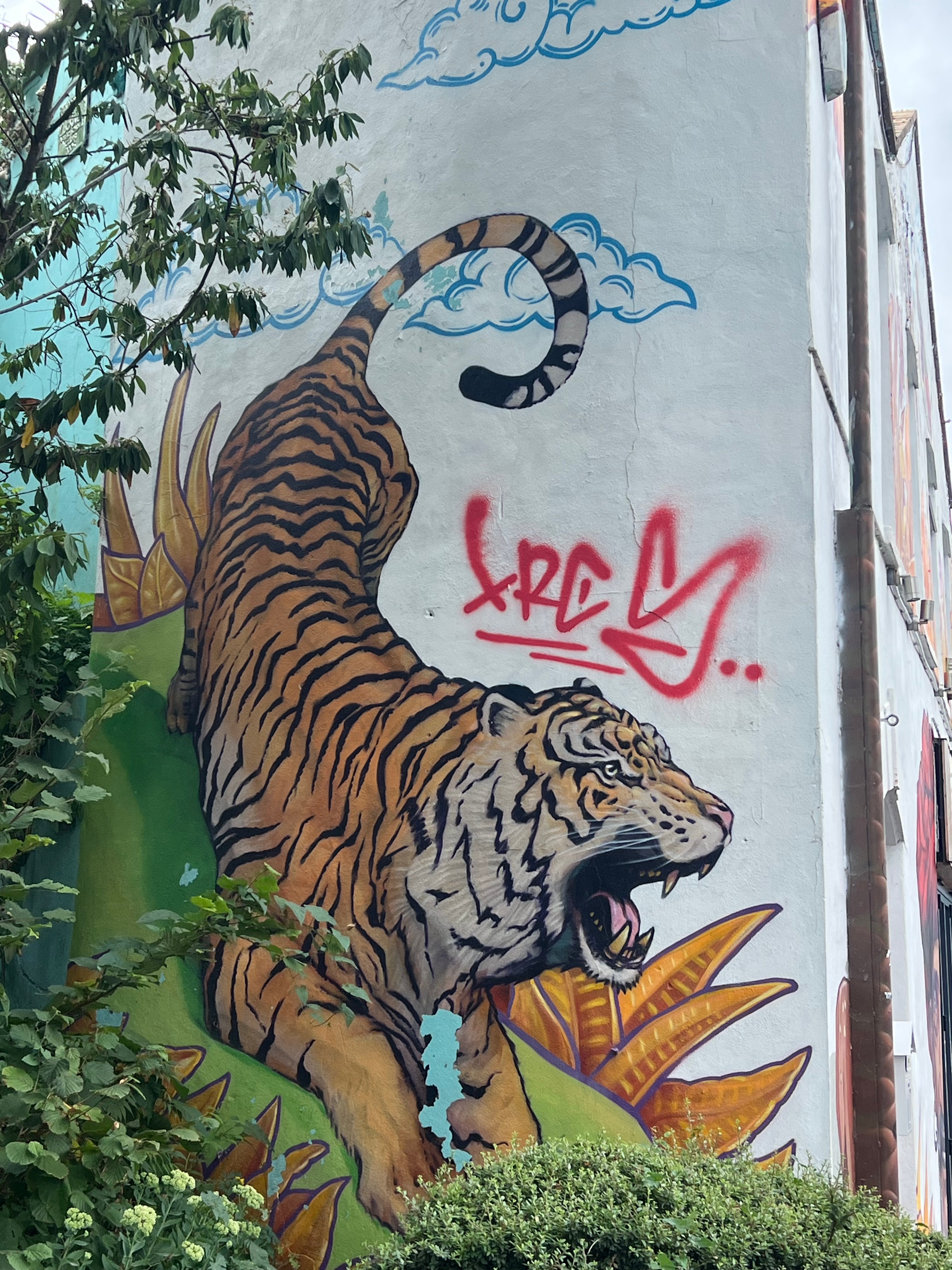 Walking through its colourful corridors and you’ll find tigers peering from rooftops, tropical birds swooping across brick walls, and mythical beasts constructed from bits of local architecture. In Bedminster, nature and imagination collide – and much of it is thanks to Upfest.