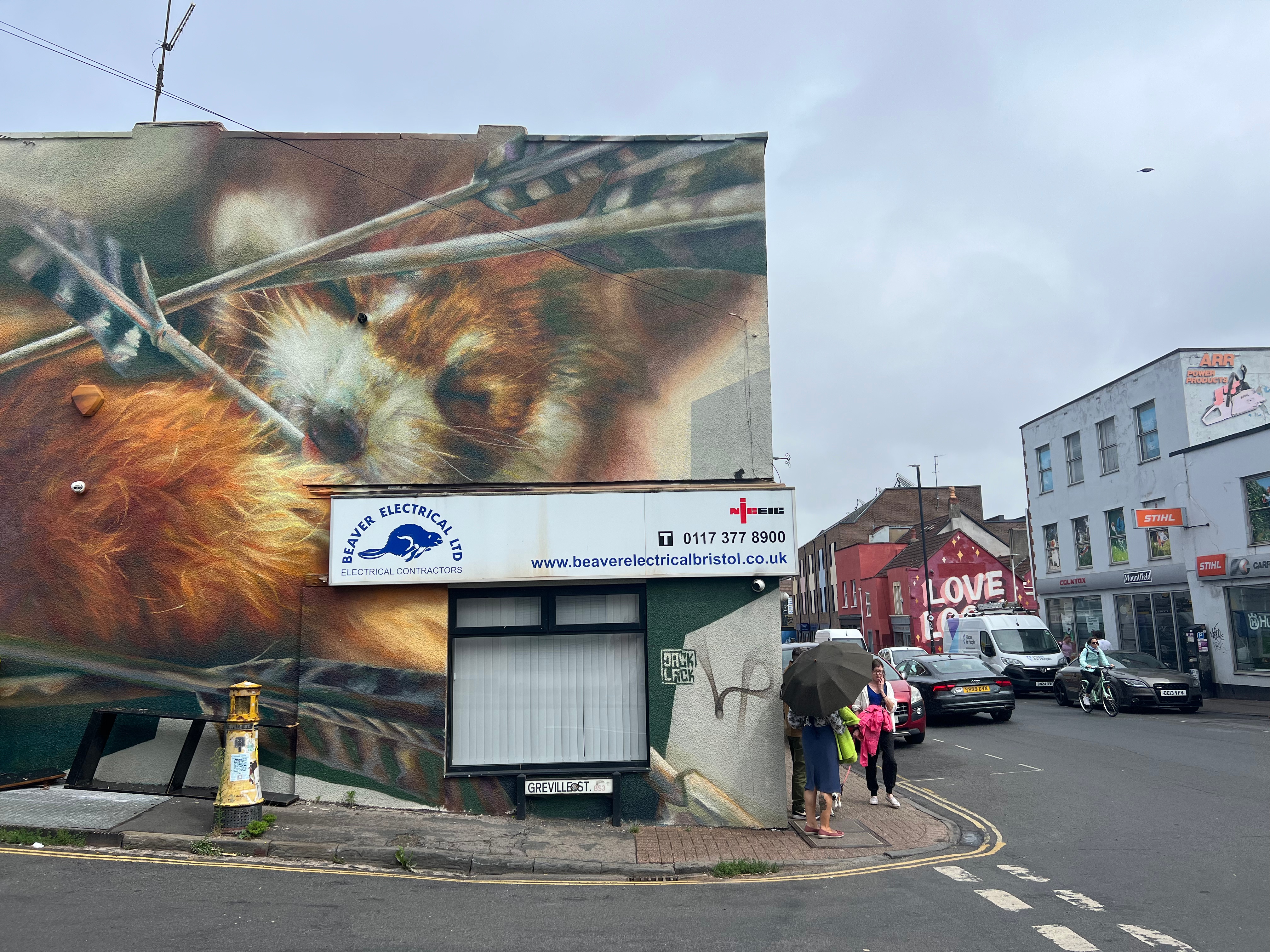If you want to explore this vibrant wildlife art scene, Bedminster is the place to start. It’s where Upfest began, and where it continues to thrive. North Street is its backbone, lined with murals big and small, many created during past festivals. Even outside of Upfest season, the neighbourhood remains alive with colour as artists update and refresh the walls year-round, so there is always something new to be discovered. Make sure to keep your eyes peeled on walls, lamposts, the top of buildings.